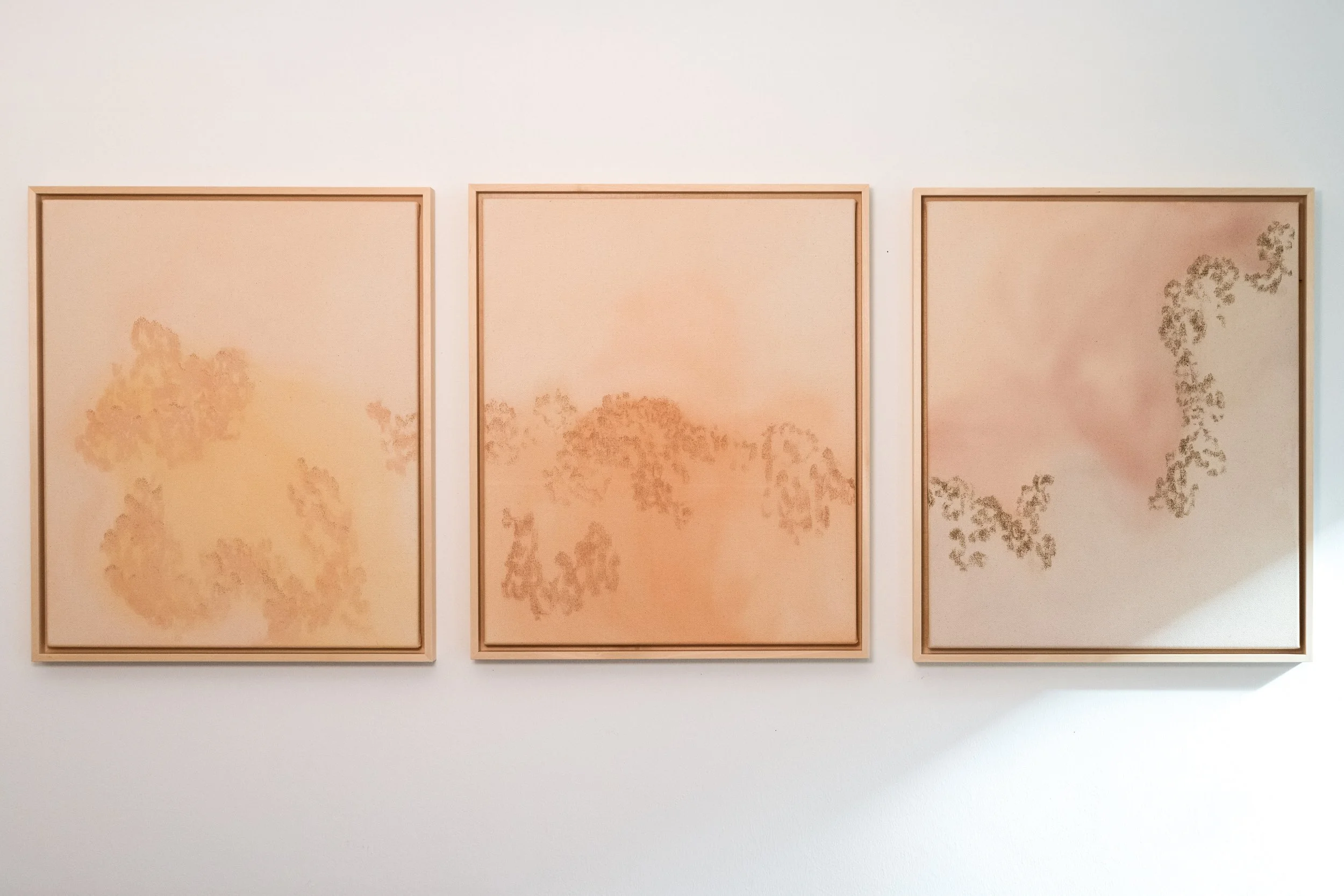 I am deeply fascinated by sensory and emotional perception: how light changes when wind brushes through trees, how clouds can shift a mood, and how we, as individuals, bring meaning to a place through our thoughts and memories. I draw from sketches and photos, gather bits of moss, tree bark or small stones as inspiration for my color and texture choices. My paintings carry that same curiosity. They're an invitation to look, feel, and rest.